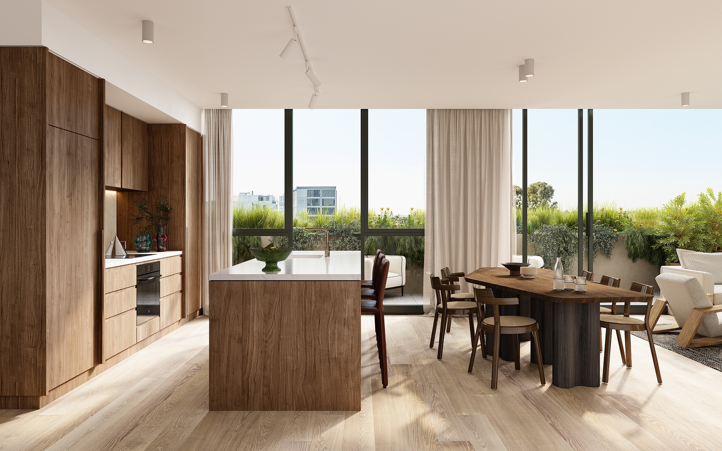 Wiltshire House, crafted by SJB, showcases refined architecture and interiors that celebrate materiality and light. Carmine House, designed by Hecker Guthrie, brings warmth and sophistication to every residence. Together, they offer a curated collection of 2 & 3 bedroom homes where space and detail are composed with purpose.